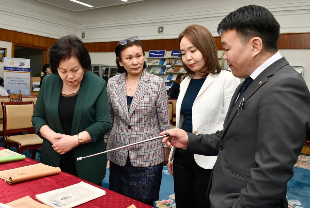 УИХ-ын Номын сангийн танхимд “Төрийн мэдээлэл” эмхэтгэлийн 35 жилийн ойд зориулсан үзэсгэлэн дэлгэж, уг сэтгүүлийг бүтээх, хэвлэх ажилд оролцож байсан эрхмүүдийг хүндэтгэн залж, талархал дэвшүүлсэн юм.