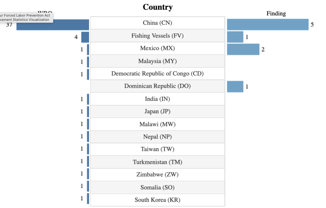- 2022 онд АНУ дэлхийн 12 улс бусдыг албадан хөдөлмөр эрхлүүлж бараа үйлдвэрлэсэн гэж үзсэн учир хилээр оруулахаас татгалзжээ